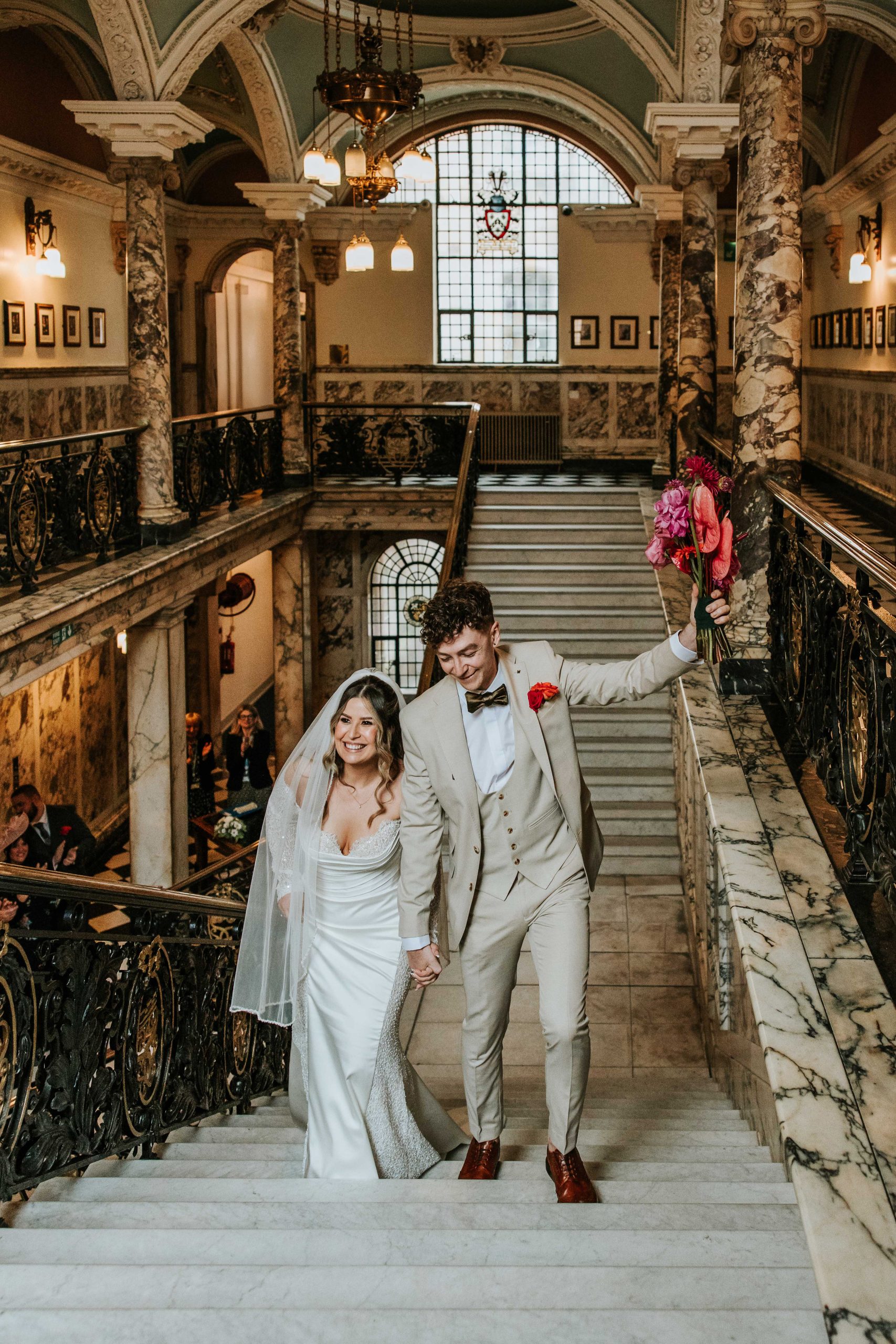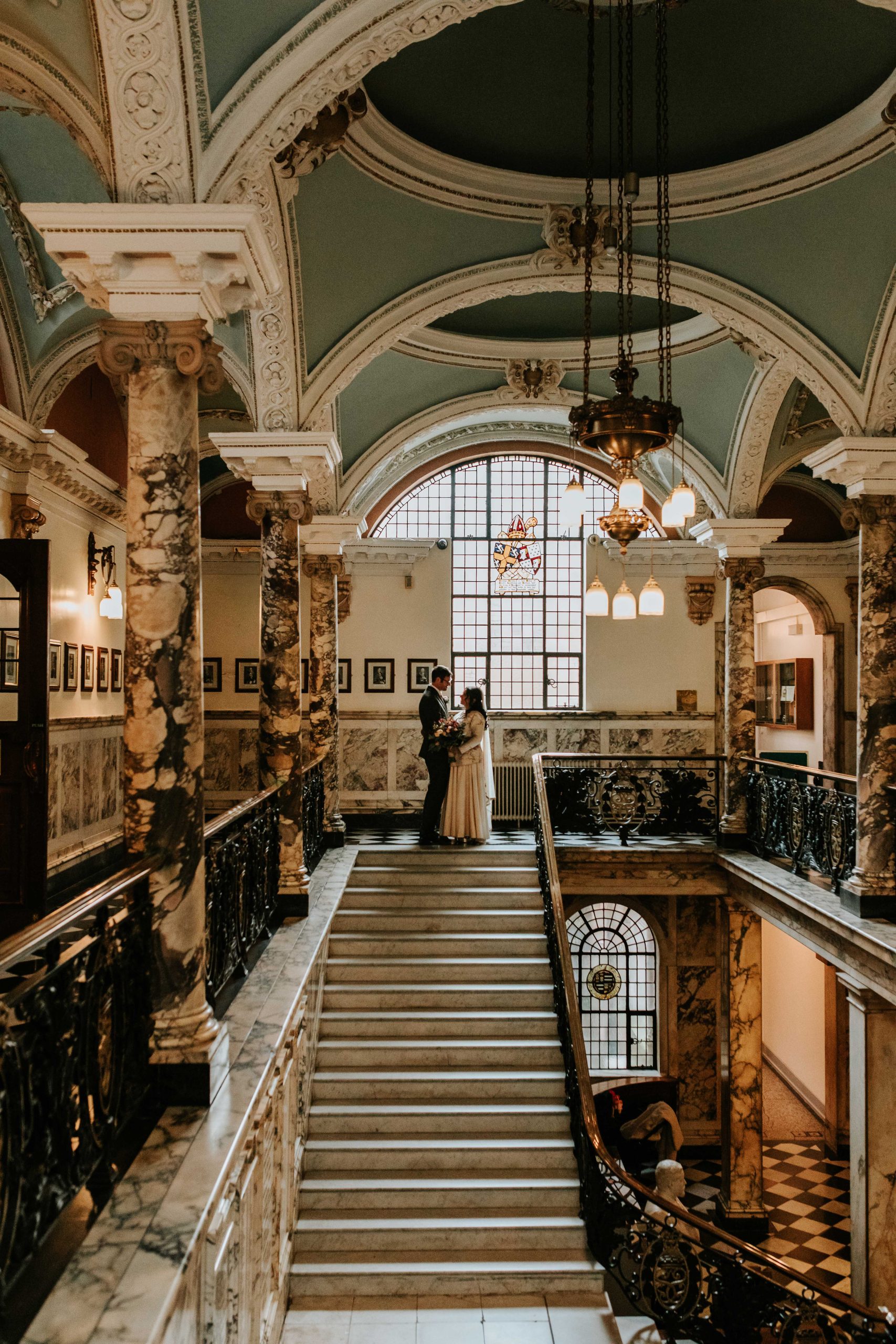 One of the standout features is the marble staircase. It has such an elegant, editorial feel and works beautifully for couple portraits and group photos. Inside, there are several different ceremony rooms to choose from, which makes it a flexible option whether you’re planning something small or a little larger.
