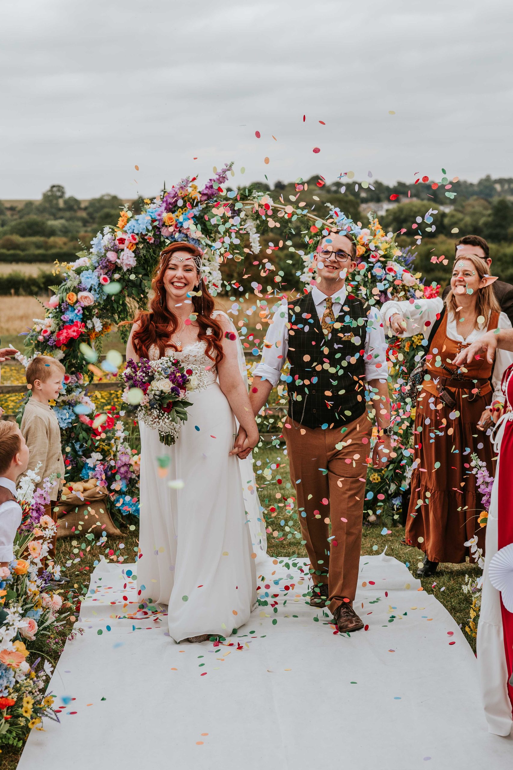 Chloe’s dress and accessories were very Arwen-coded, elegant and ethereal while still feeling completely her. I was also obsessed with the effort the guests made with their outfits, as well as the celebrant fully committing to the theme dressed as Gandalf. It was one of those weddings where everyone truly leaned in, and it made the atmosphere unforgettable.