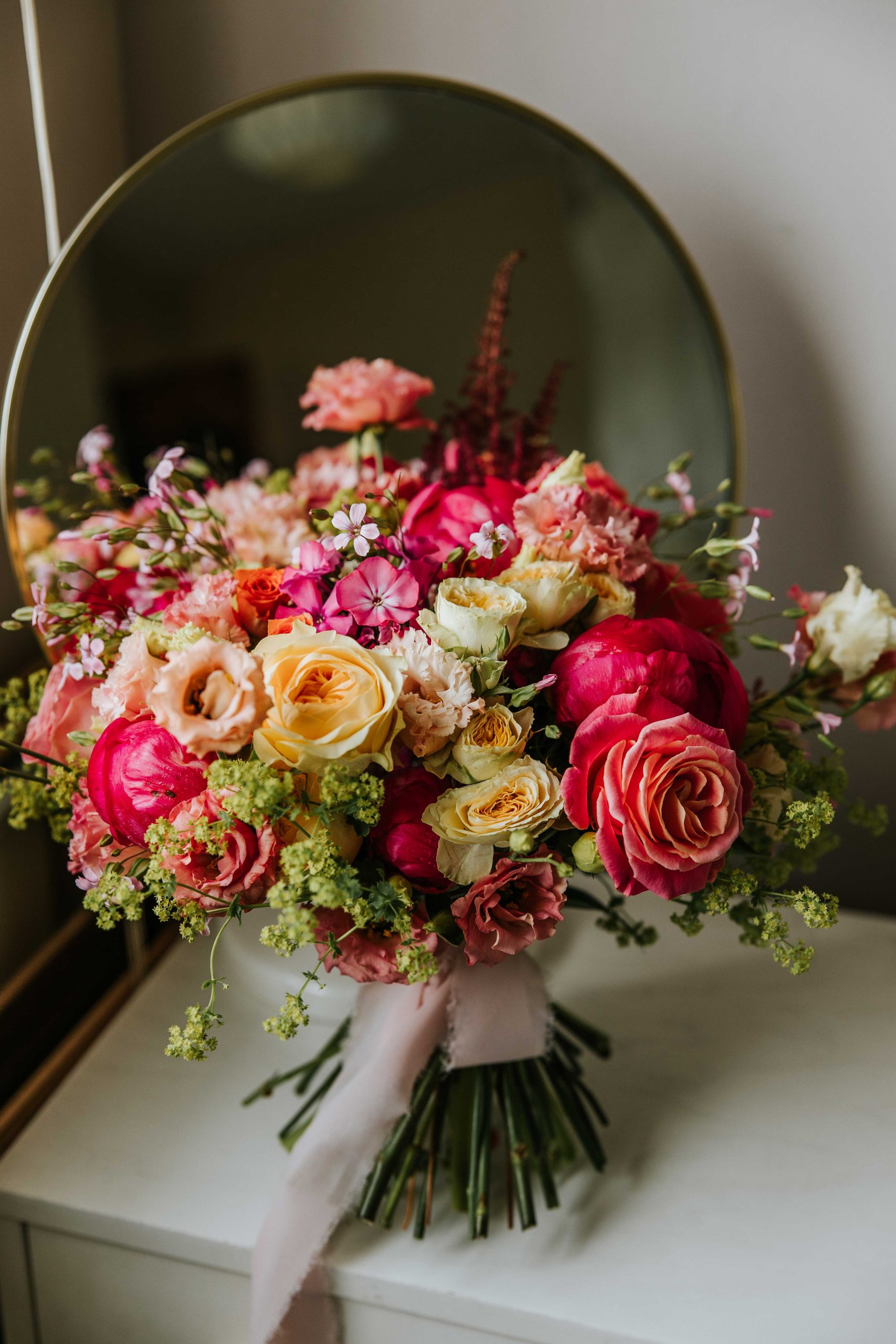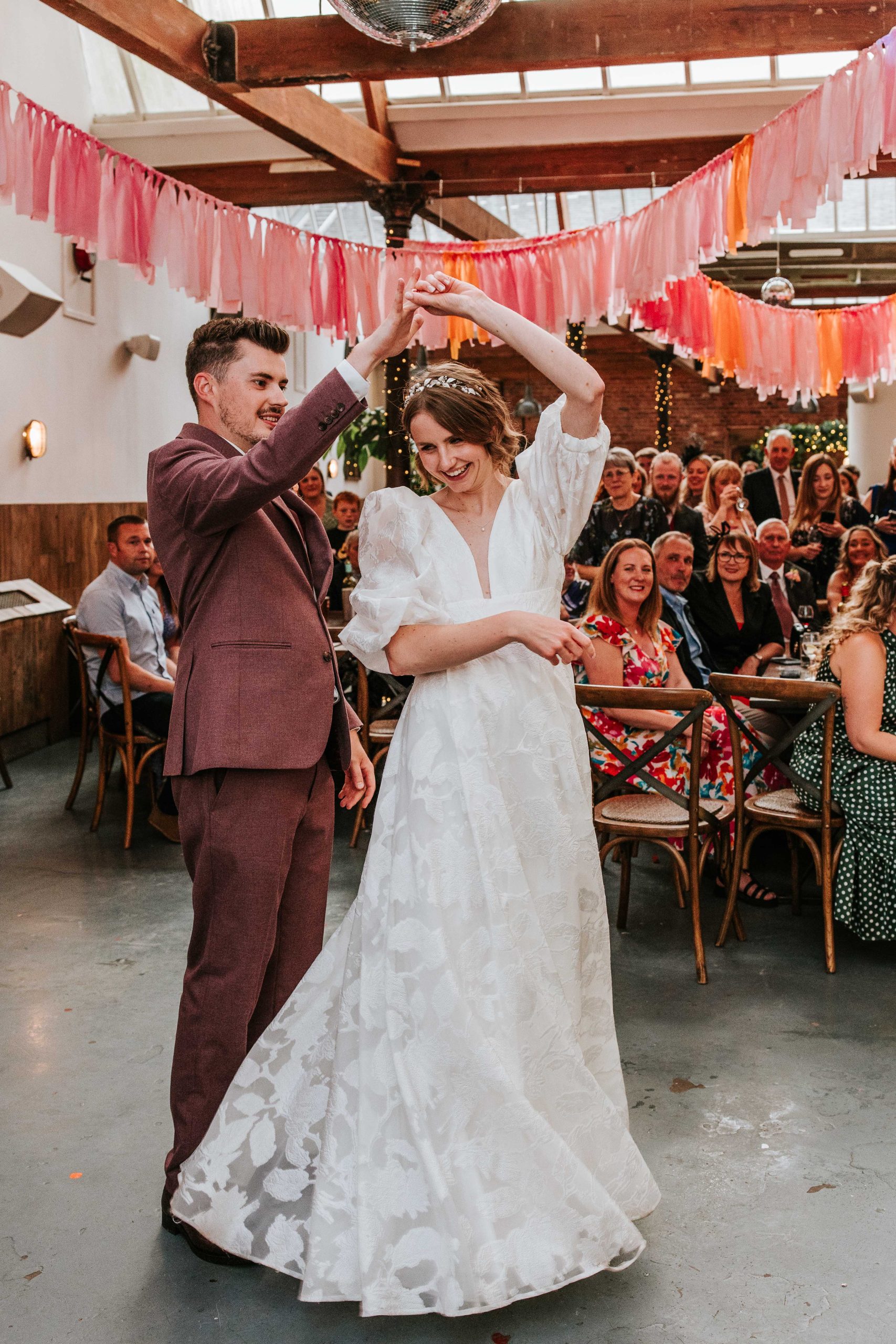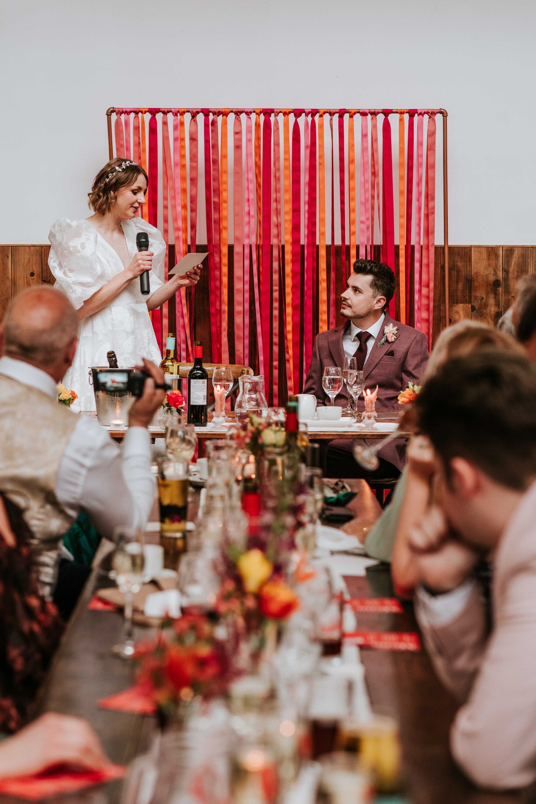 Amy & Sam’s wedding felt like a summer party from start to finish. Their colour palette of pinks and oranges brought so much energy to the day and worked beautifully against the industrial backdrop of the venue.