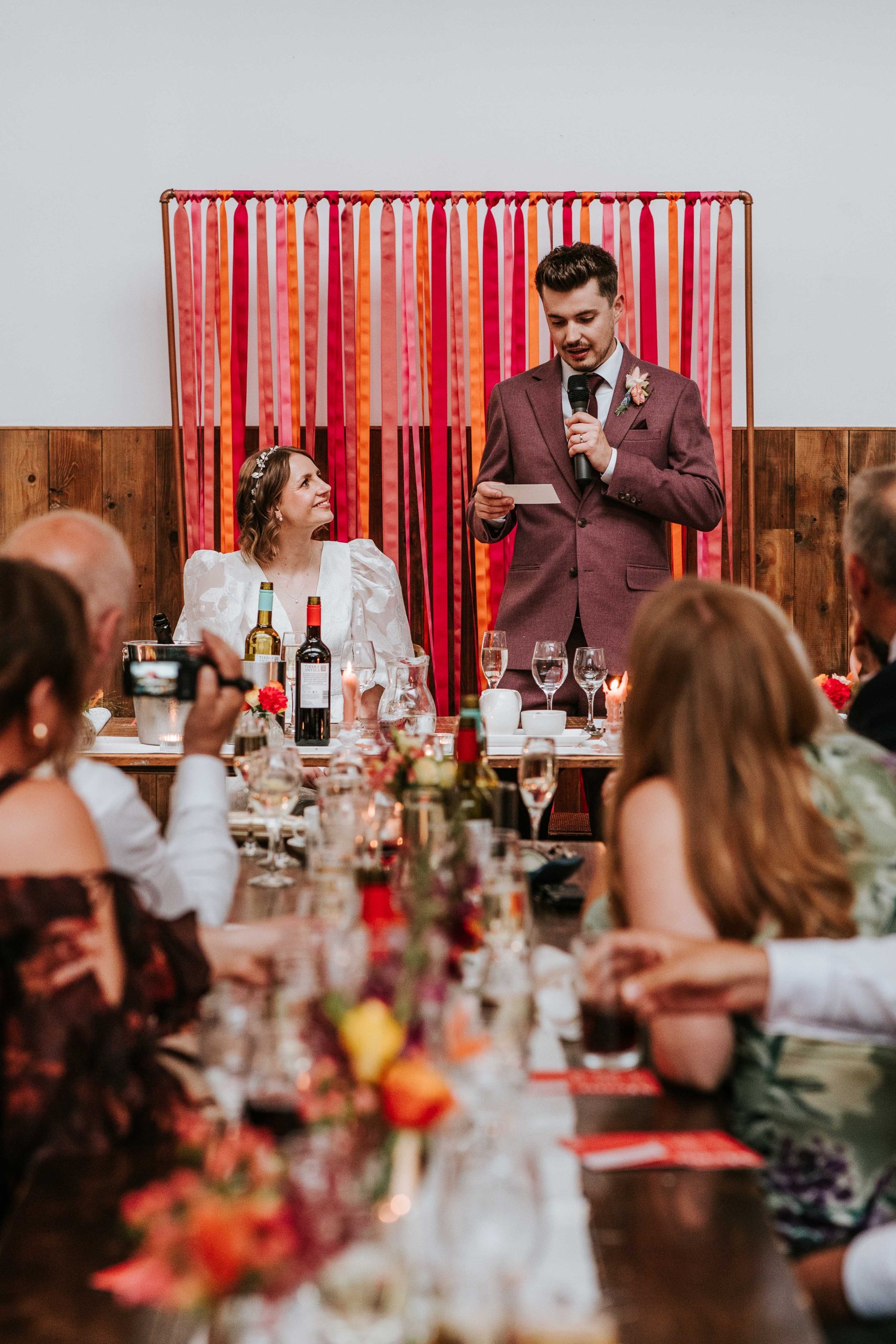 We’ve been to a few festivals together over the years and wanted to bring that festival feeling indoors through our décor. The aim is for the day to feel colourful, joyful, and full of energy from start to finish.